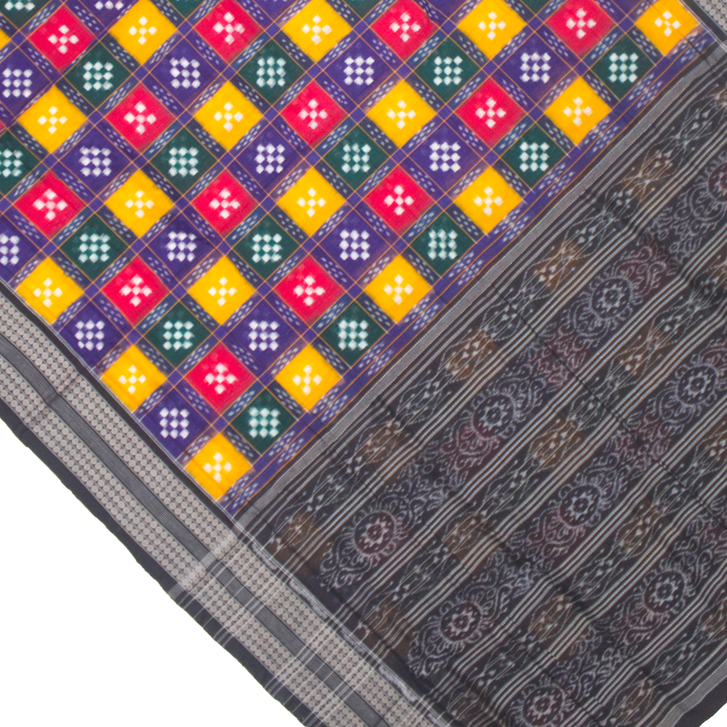 Indulge in the luxurious beauty of our Black Multicolor Handloom Cotton Sambalpuri Saree. With its exquisite handloom craftsmanship and vibrant color palette, this saree exudes elegance and sophistication. Made with premium quality cotton, it offers a comfortable and stylish drape, making it the perfect choice for any occasion. Elevate your wardrobe with this exclusive saree today.