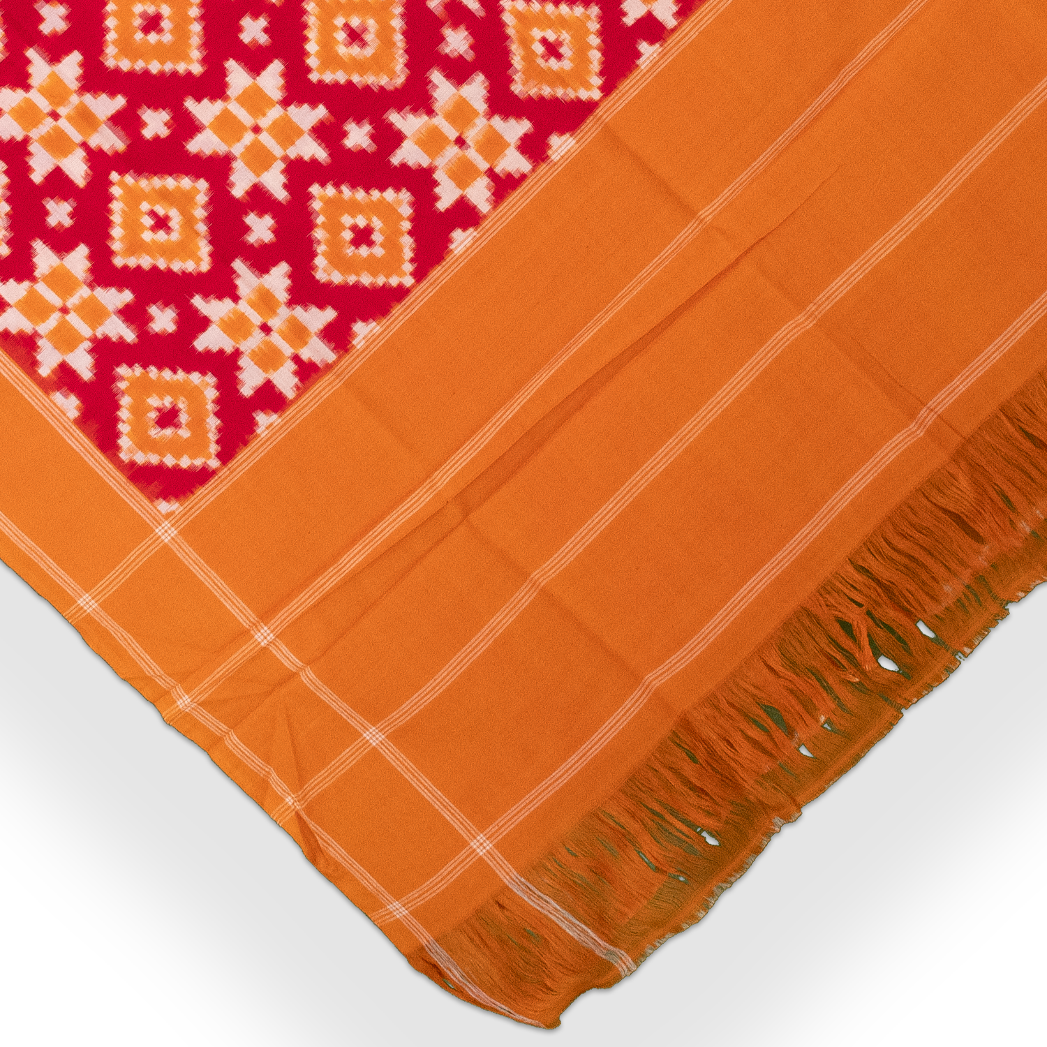 This stunning Red Cotton Pochampally Double Ikkat Handloom Dupatta features a unique design that is sure to elevate your wardrobe. Woven of luxurious cotton, its subtle texture and intricate patterning are sure to make a sophisticated statement. Add a touch of sophistication to any ensemble with this exclusive and exquisitely crafted dupatta.