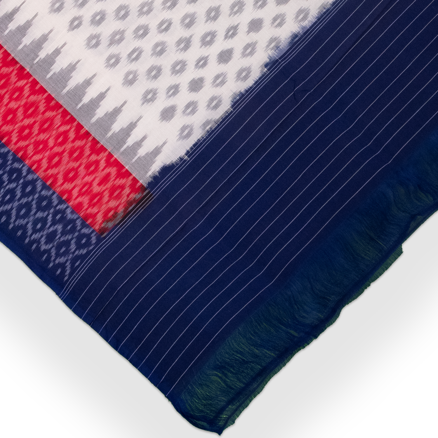 This beautiful White Cotton Pochampally Handloom Dupatta is crafted from luxurious cotton and woven with delicate precision, creating a sophisticated and luxurious look. An eye-catching piece for any wardrobe, this piece adds a sense of tasteful elegance to any outfit.